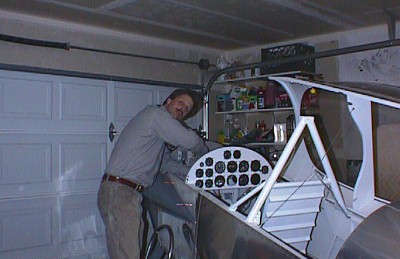 Fuel selector/gauge and switch/breaker panel being fabricated, 09/05/00 |