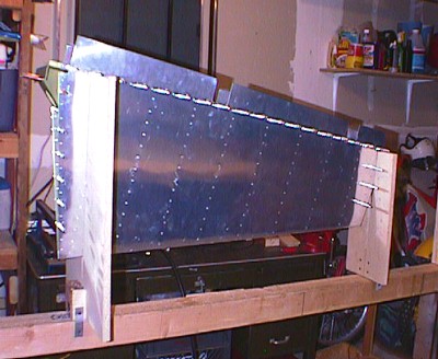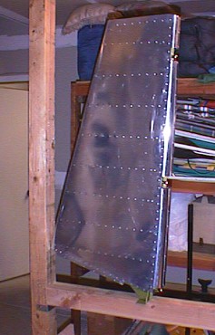 Rudder skin on frame ready to rivet, 06/27/99 |